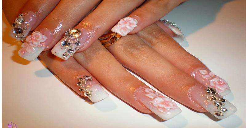 1)用水晶钳减掉指甲后缘处松动的水晶指甲。
