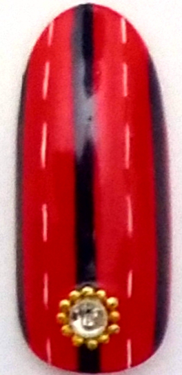 4、继续用彩绘笔蘸取黑色甲油,在左侧画一条短于中线的竖线。